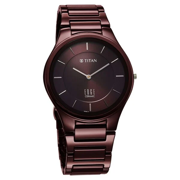 NameTitan Edge Wine Ceramic Quartz Analog Maroon Dial Red Ceramic Strap Watch For Men